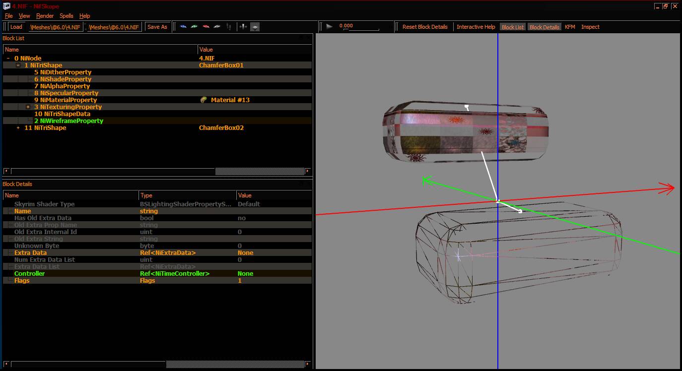 An NiWireframeProperty allows applications to switch between drawing geometry as solid or as wireframe outlines.